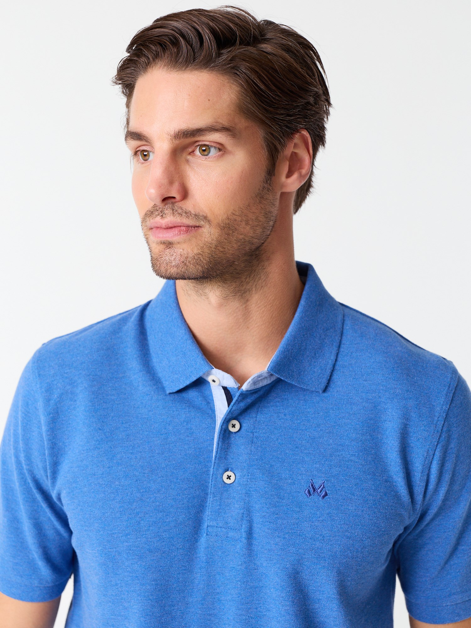 Klassisk pique med fine kontrastdetaljer og splitter i siden. Blå variant er ensfarget, og de andre er melert.
