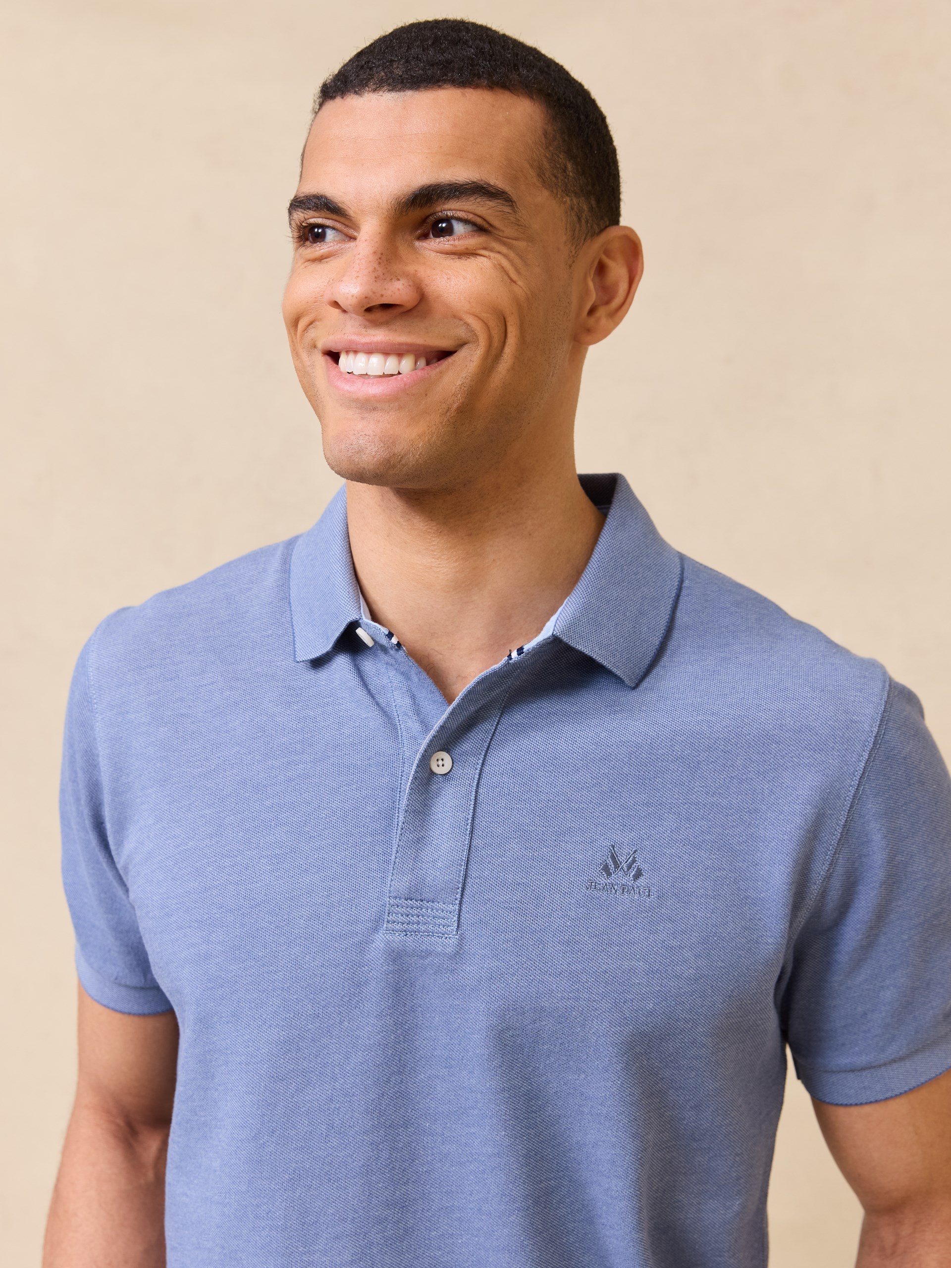 Klassisk pique med kort erm og fine detaljer i nakken og på knappestolpen.