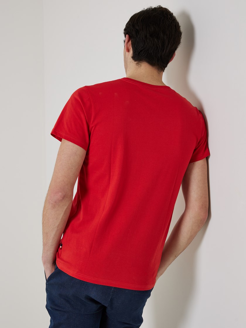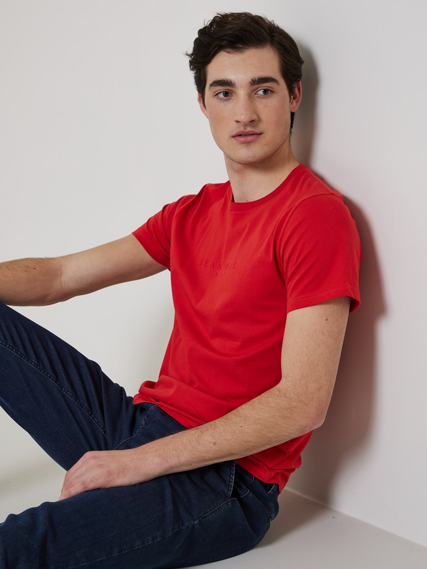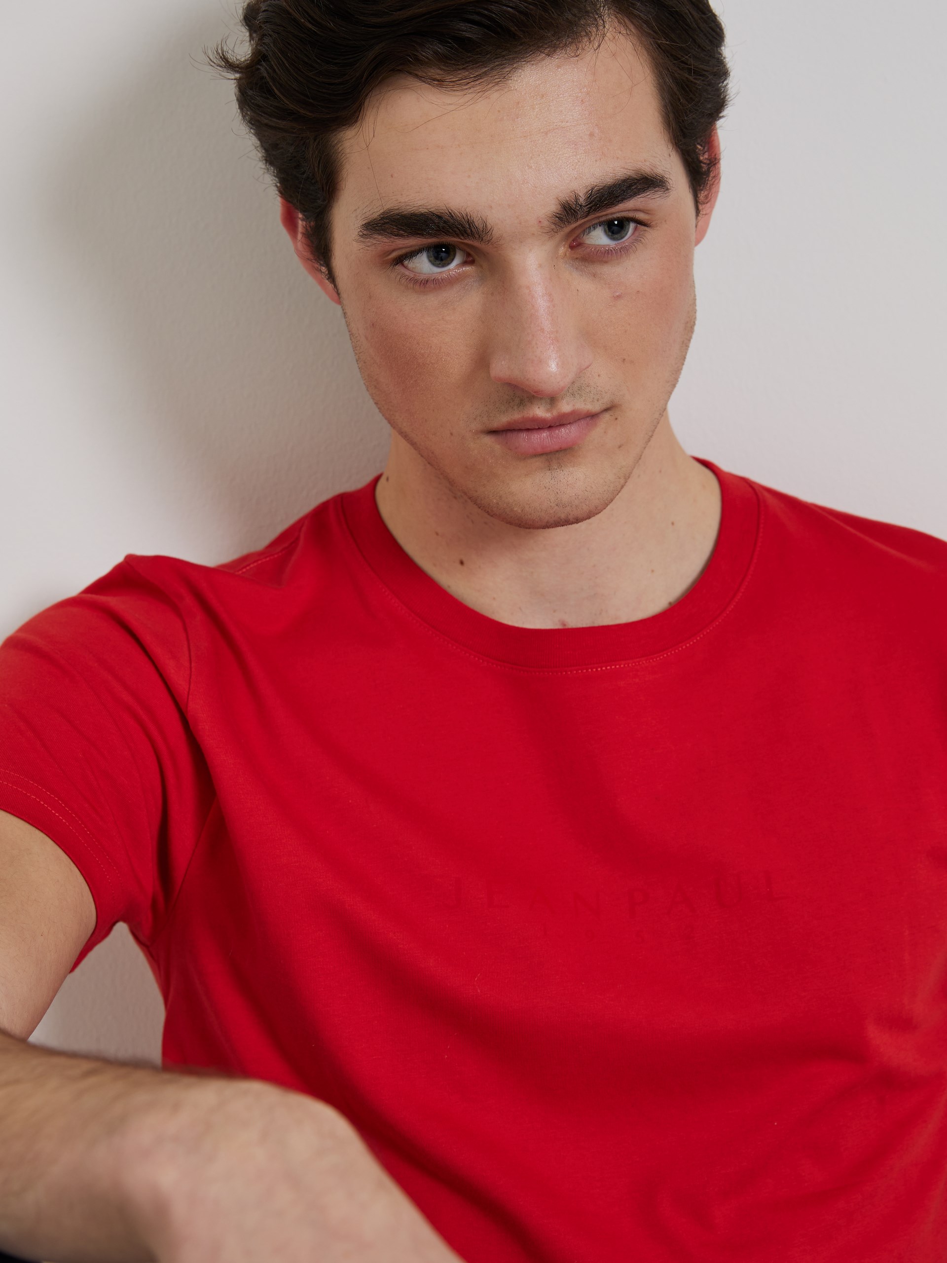 Sporty t-skjorte i behagelig bomull med klassisk logoprint på brystet. T-skjorten har rund hals med rib, kort erm. Modellen er 189 cm høy og bruker str M.