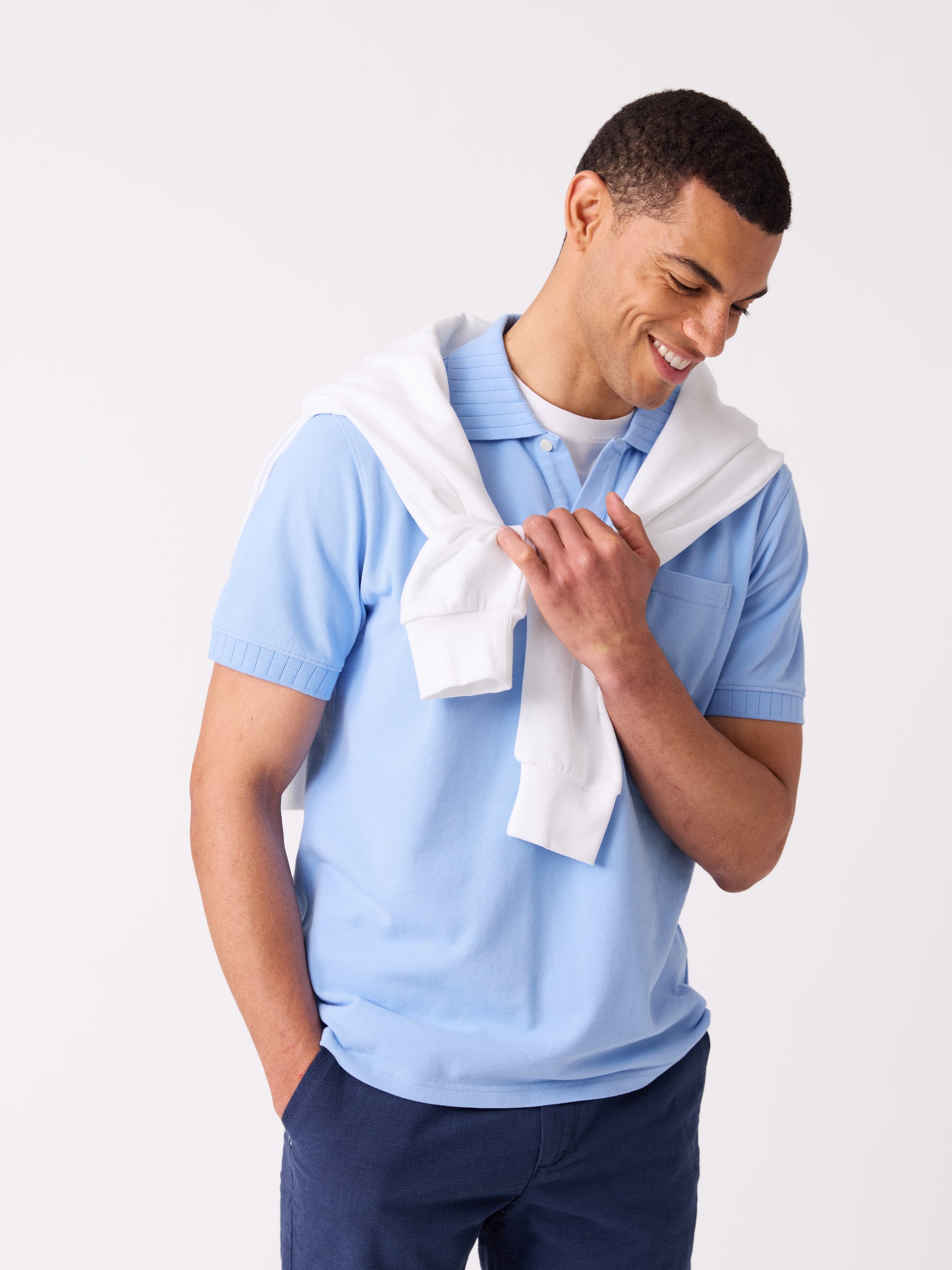 Modellen er 189 cm høy og har på seg str L.Toby pique