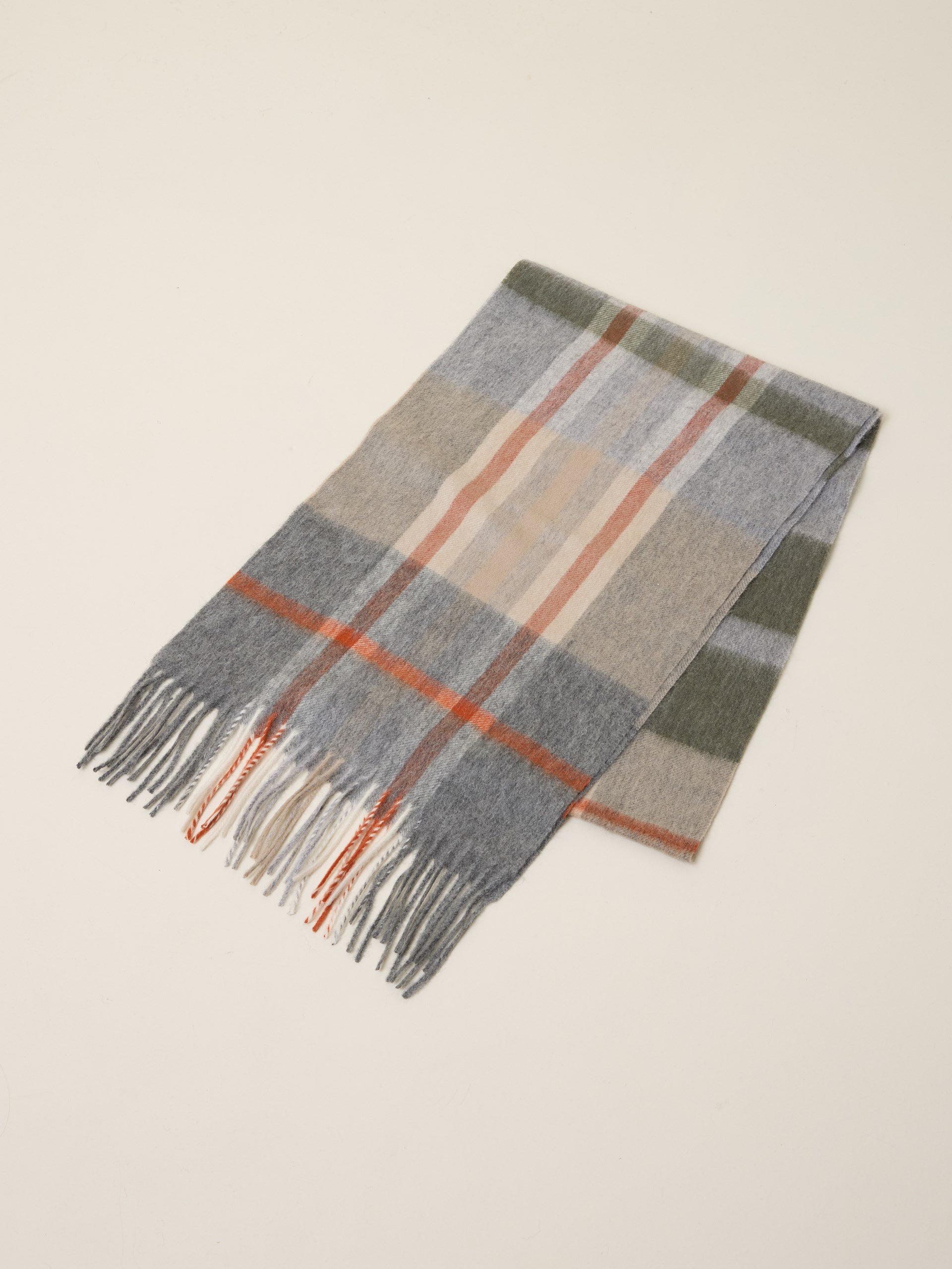 Mykt rutet skjerf i 100% ull. Skjerfet er 200 cm x 30 cm stort og har frynser