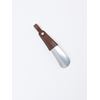 Skohorn i solid metall med hempe og lekker logopreget lærbesetning fra skandinaviske kuer. Skohornet leveres i gaveske og er produsert i Sverige av overskuddsmateriale fra produksjon av belter.
