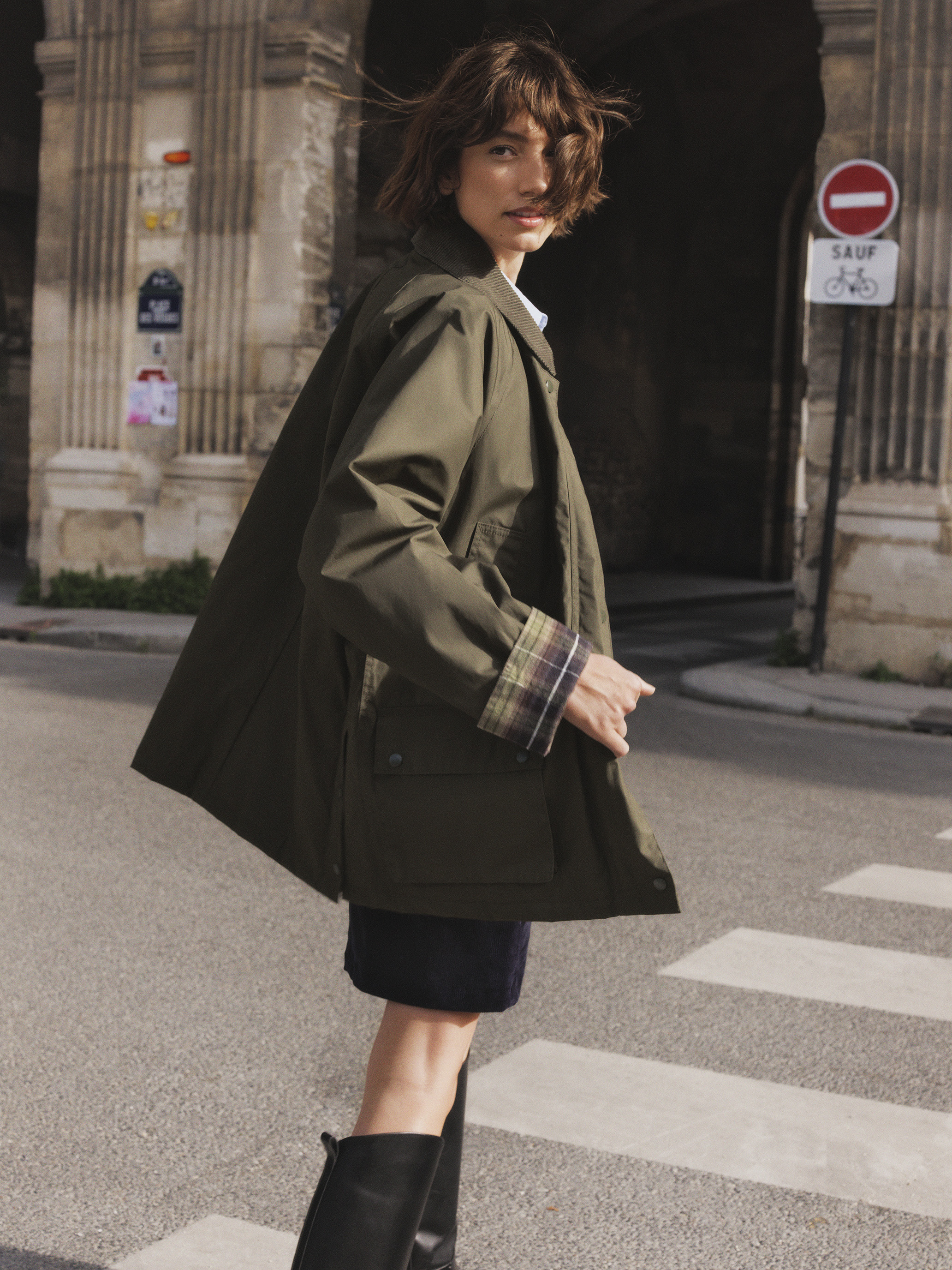 Jakken er laget av vaskbar 100% bomull, med en elegant cordfløyelskrage som gir et klassisk preg. Den lette vatteringen i resirkulert polyester sørger for varme, mens den quiltede innsiden gir ekstra komfort. Takket være den spesielle voksbehandlingen er jakken både vannavstøtende og vindtett – den ultimate beskyttelsen mot det ustabile høstværet. Med praktiske detaljer som glidelås og trykknapper i front, er du godt rustet mot enhver værtype.